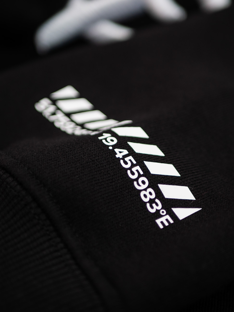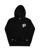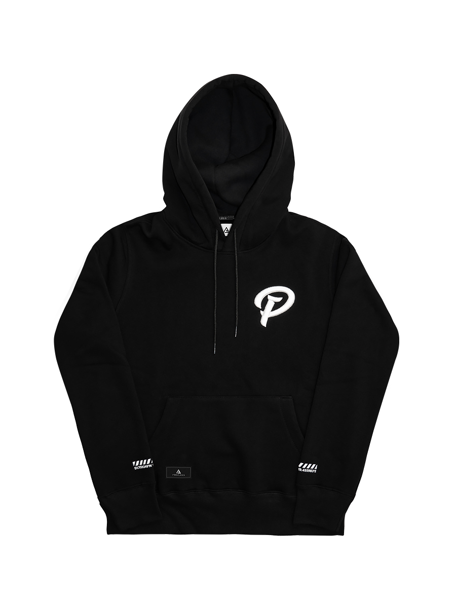 Czarna bawełniana bluza z kapturem o gramaturze 290g/m2 z literą „P” na piersi.