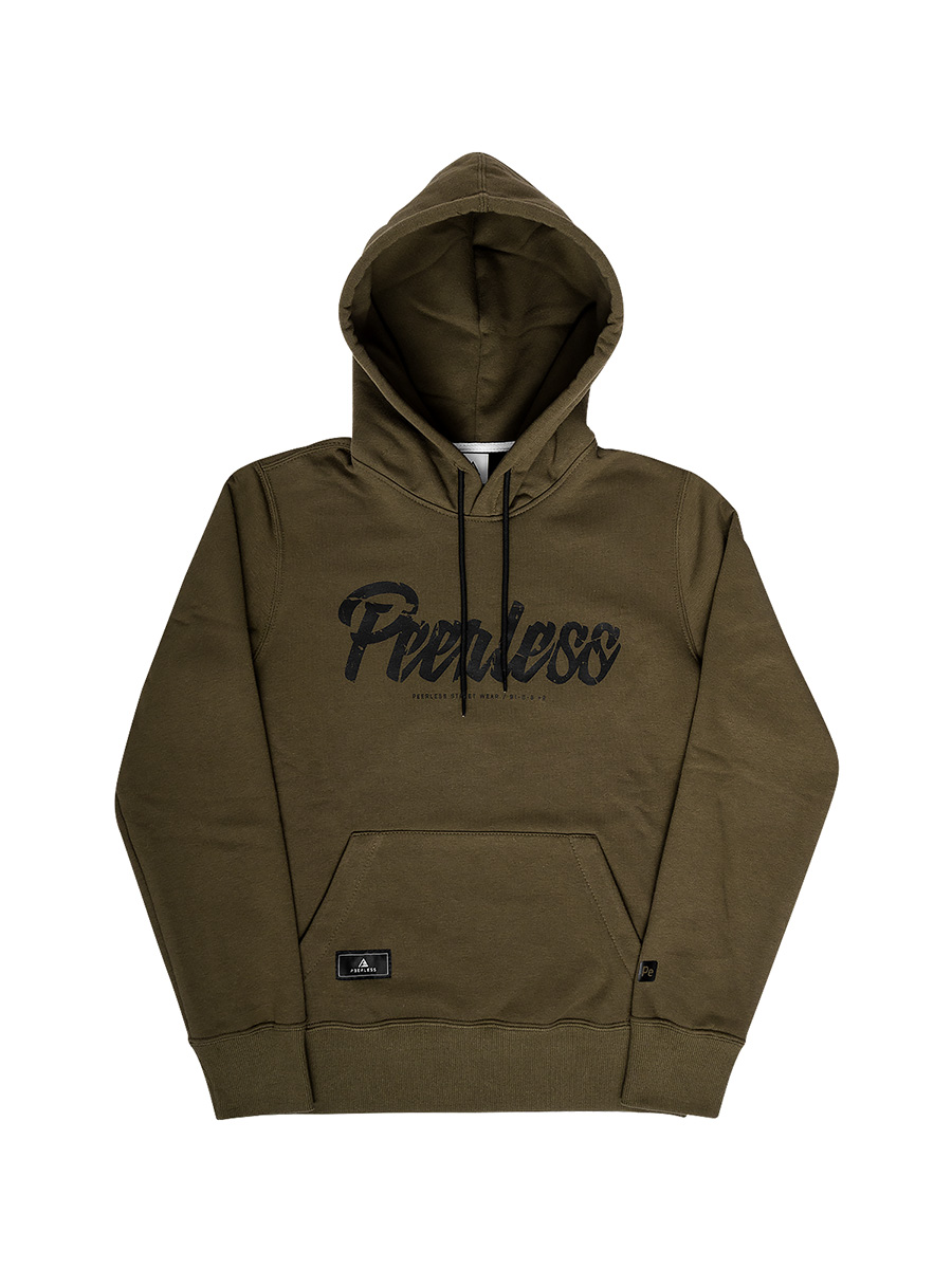 Bawełniana bluza z kapturem w kolorze khaki o gramaturze 290g/m2 z aplikacją na klatce piersiowej.
